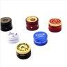 The six different print color could be printed on both top and side of twist top by Italian CALF and OMSO multicolor printer. Swiss MADAG top positioned hot foil stamping machine could print any design on the top and sides of aluminum twist caps. Besides, top embossing and flexographic decoration could be also workable in the production process.